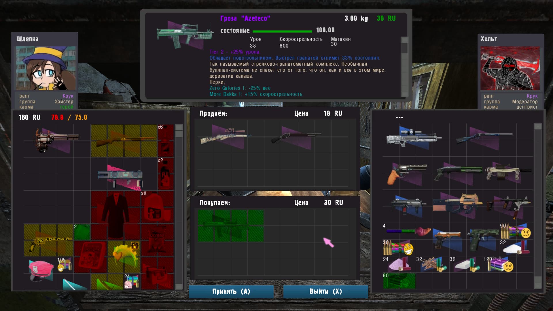 Закон Шляпки - пост-ироничный лутер-шутер на базе OGSR Engine. Шляпка потеряла свою любовь - последнее место, где её можно найти, это зона Параши 2 - гниющий труп некогда добротной онлайновой игры, в которой теперь копошатся моддеры, грифтеры и различные страшные сущности. Абьюзя странные механики Параши 2, Шляпка пройдёт путь вплоть до сердца игры и возможно найдёт себя.